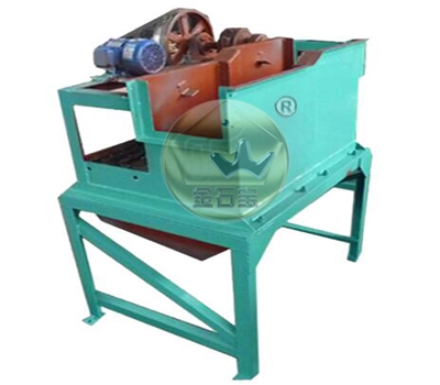 1、电动机 2、传动部分 3、摇臂 4、连杆 5、橡胶隔膜 6、机架 7、排矿口 8、跳汰室 9、隔膜室 10、补水口
